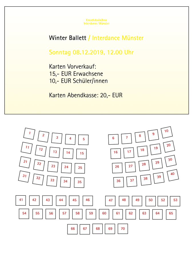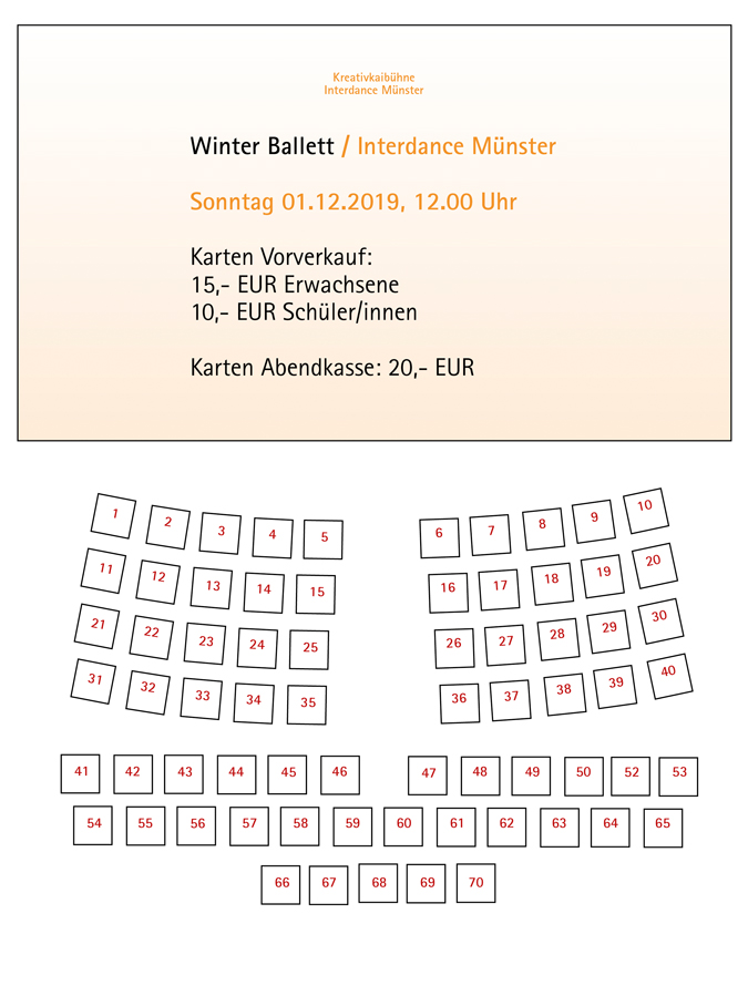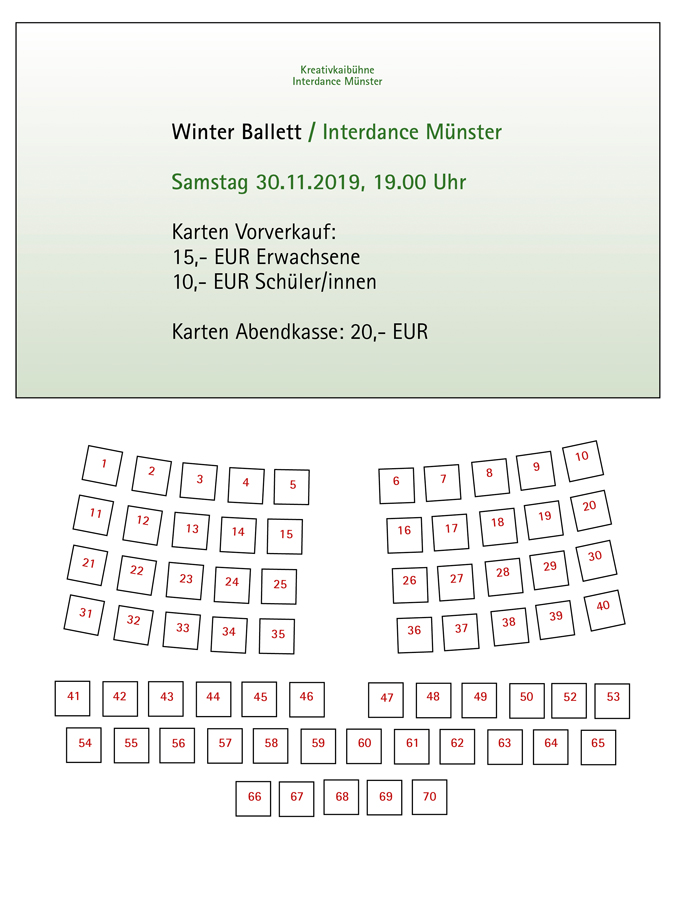 Tickets gibt es bei Interdance Münster (Montags – Freitags, 16 – 18 Uhr), Vorverkauf nach den Herbstferien.