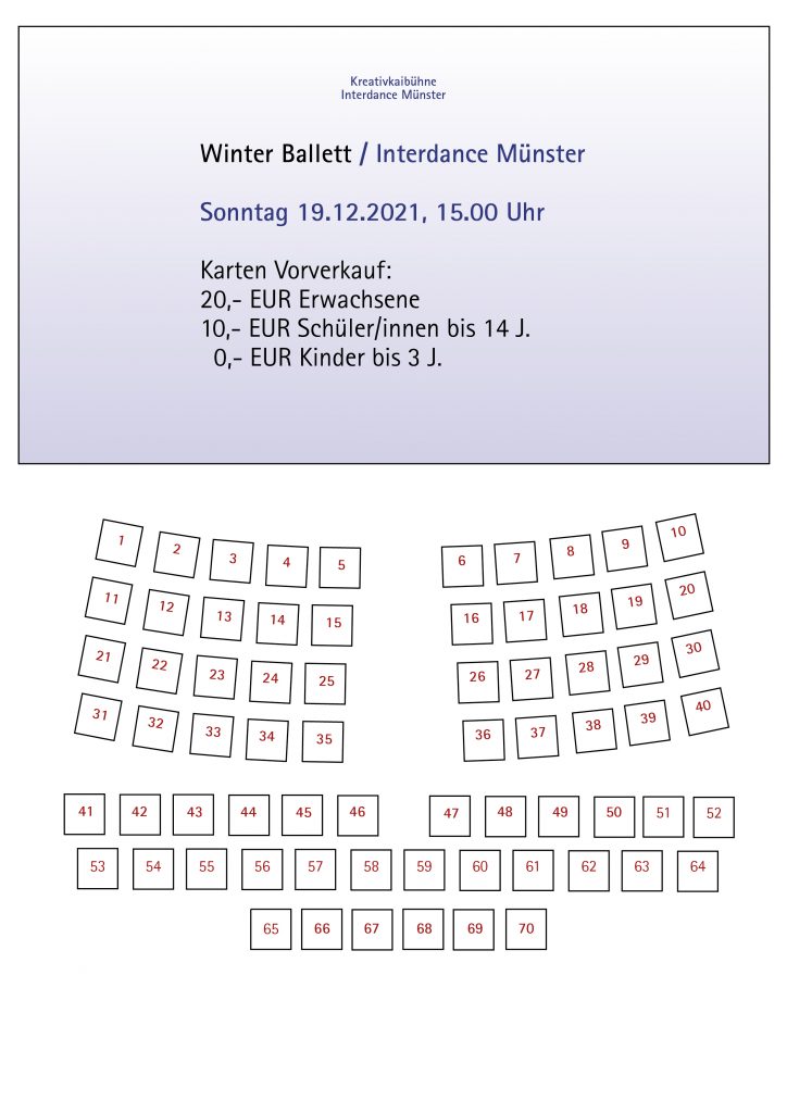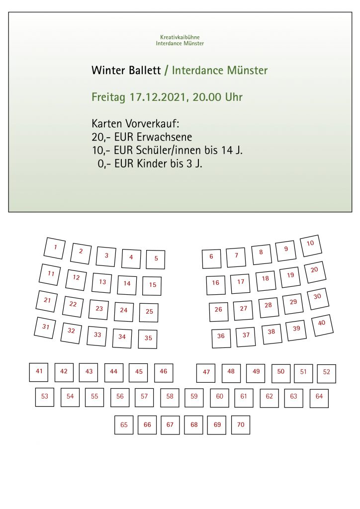 Tickets gibt es bei Interdance Münster (Montags bis Freitags, 16 – 18 Uhr), Vorverkauf ab dem 20. November 2021.